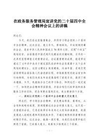 在政务服务管理局宣讲党的二十届四中***精神会议上的讲稿