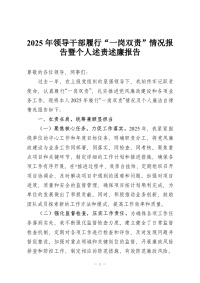 2025年领导干部履行“一岗双责”情况报告暨个人述责述廉报告