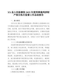 XX县人民检察院2025年度刑事裁判涉财产部分执行监督工作总结报告