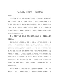 “忆党史、当先锋”党课报告