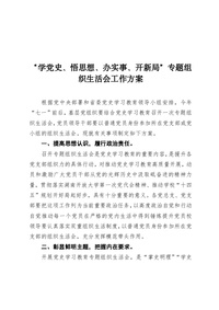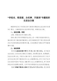 “学党史、悟思想、办实事、开新局”专题组织生活会工作方案