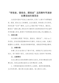 “学党史、强信念、跟党走”五四青年节演讲比赛活动方案范文