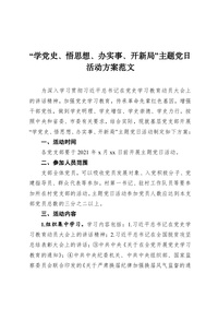 “学党史、悟思想、办实事、开新局”主题党日活动方案范文