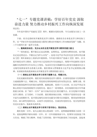 “七一”专题党课讲稿:学好百年党史 汲取奋进力量 努力推动乡村振兴工作向纵深发展