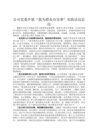 公司党委开展“我为群众办实事”实践活动总结