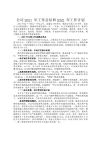 公司2021年工作总结和2022年工作计划