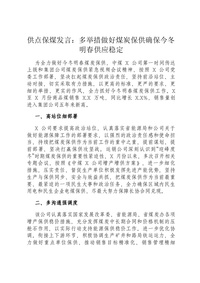 供点保煤发言:多举措做好煤炭保供确保今冬明春供应稳定