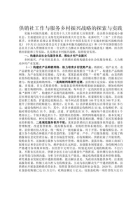 供销社工作与服务乡村振兴战略的探索与实践