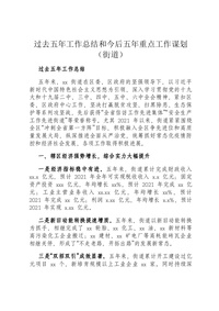 过去五年工作总结和今后五年重点工作谋划(街道)