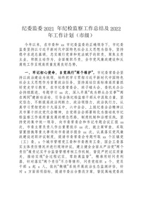 纪委监委2021年纪检监察工作总结及2022年工作计划(市级)