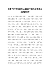 交警大队党支部书记2025年抓基层党建工作述职报告